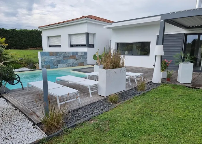 La Villa Mina Avec Piscine Privee Proche Mer si trova a una distanza di 6 km dal Musee du Pain de la Mie Caline e invita gli ospiti a godere di una terrazza.
